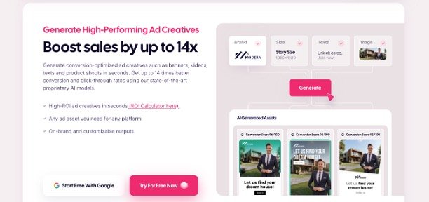 Ad Creatives Generator: Makes conversion-focused banners, texts, and videos for any platform like Facebook or Google in seconds.