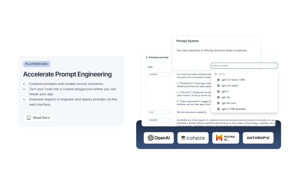 Open-Source Platform: Agenta AI is open-source, allowing for customization and integration into existing workflows.