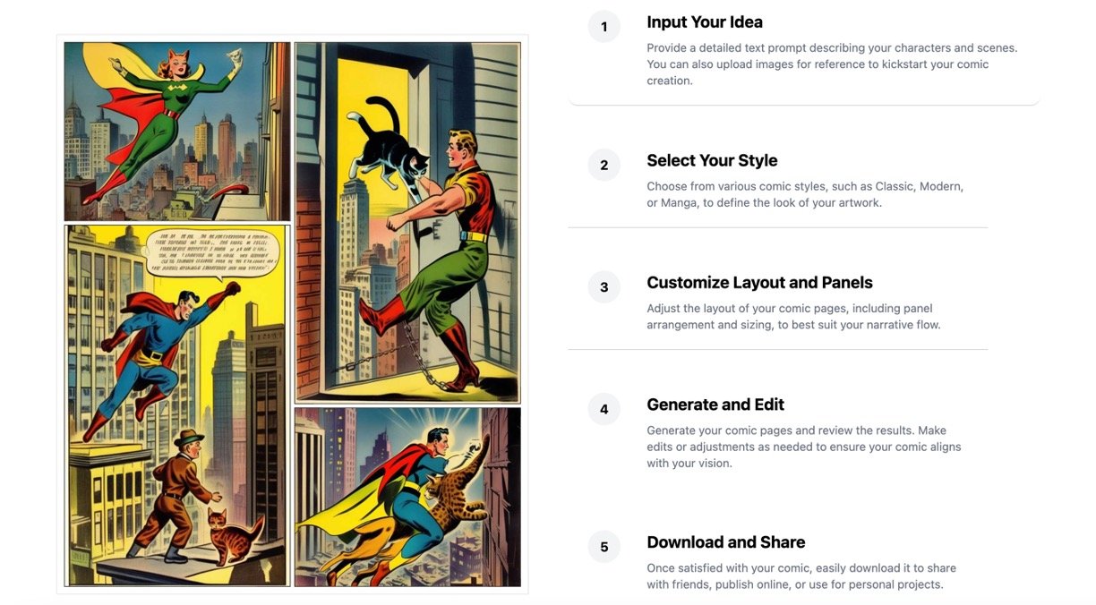 • AI Comic Generator: Create amazing comics effortlessly