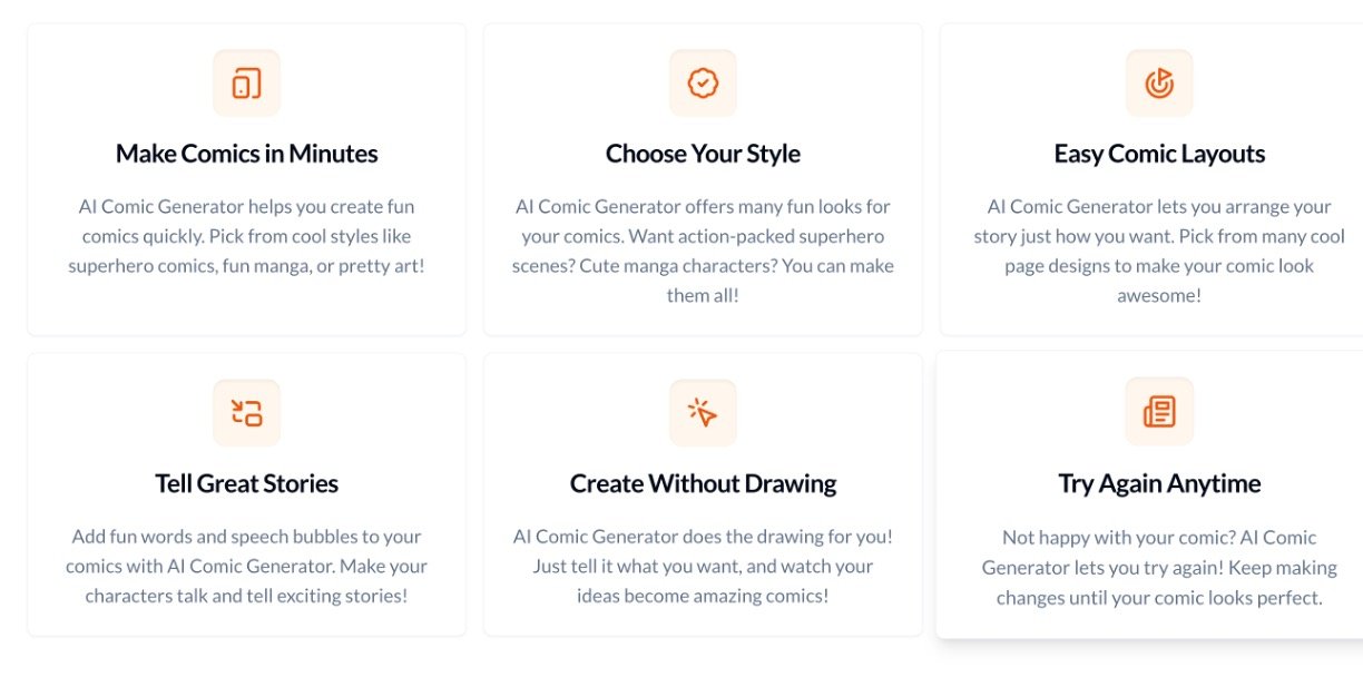 • Bring your stories to life with AI-generated comics—no drawing required.