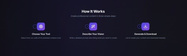 Simple three‑step workflow: choose a tool, describe your vision in a prompt, then generate and download your content instantly.
