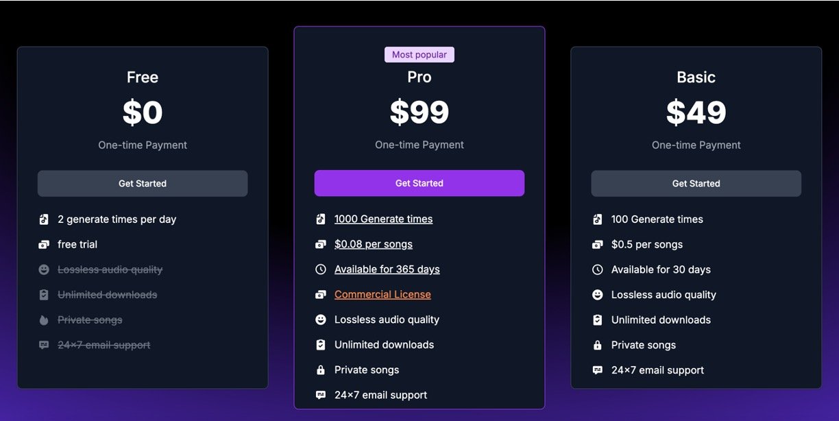 Text-to-song and lyrics-to-song modes for simple or detailed music creation.