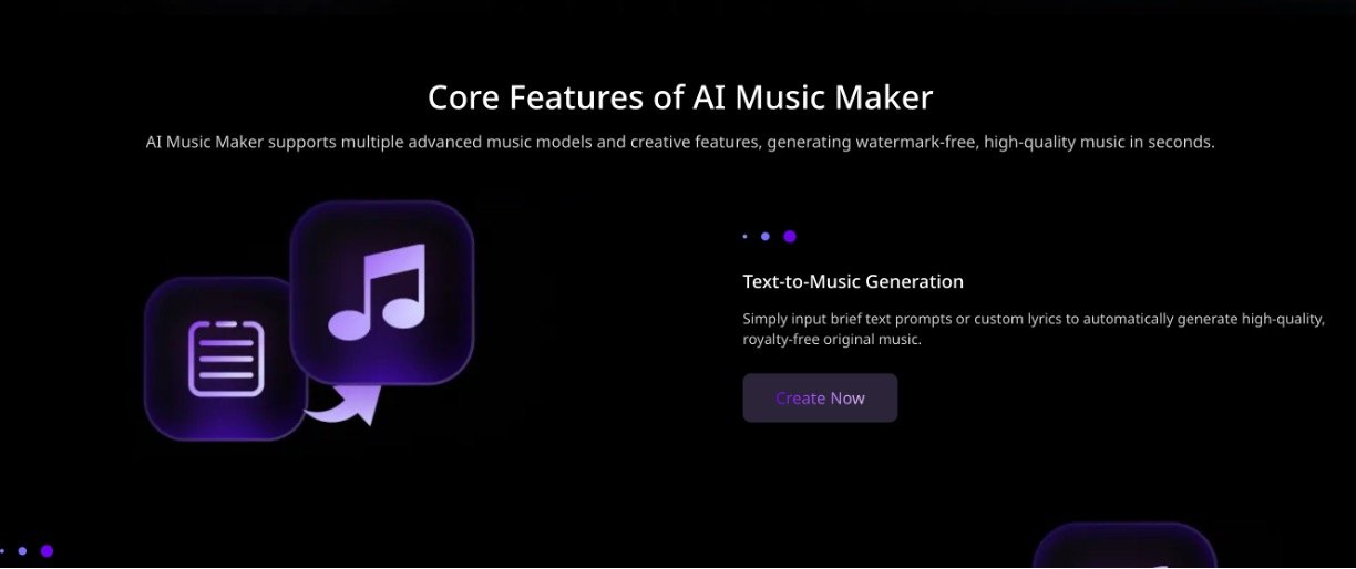 • Text-to-Music Generation: Convert brief text or lyrics into royalty-free original songs within seconds.