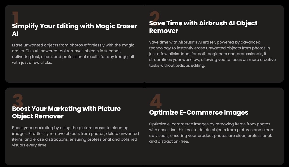 AirBrush Object RemoverĀ is a free AI-powered tool that effortlessly removes unwanted objects from photos in seconds, delivering clean, natural, and professional-looking images with just a few clicks. Ideal for both beginners and professionals, this tool intelligently fills in erased areas with matching background details, ensuring seamless editing without the need for advanced skills. Whether removing photo-bombers, distracting elements, or watermarks, AirBrush makes photo cleanup fast and easy.