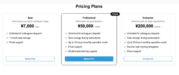 Pre-Configured AI Colleagues: Includes specialized agents like Taro (Quote Generator), Yumi (Sales List Creator), Maki (Order Assistant), and Sachi (Newsletter Writer) to handle specific business tasks.