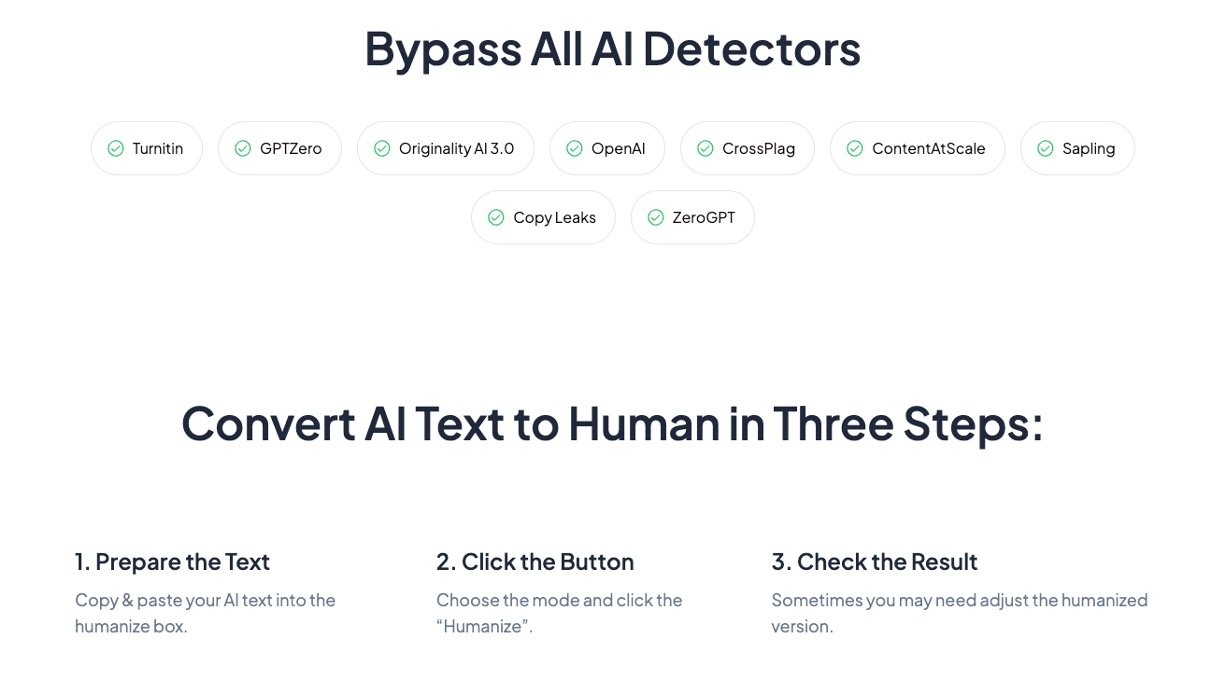 Converts AI-generated text into 100% human-like natural language.