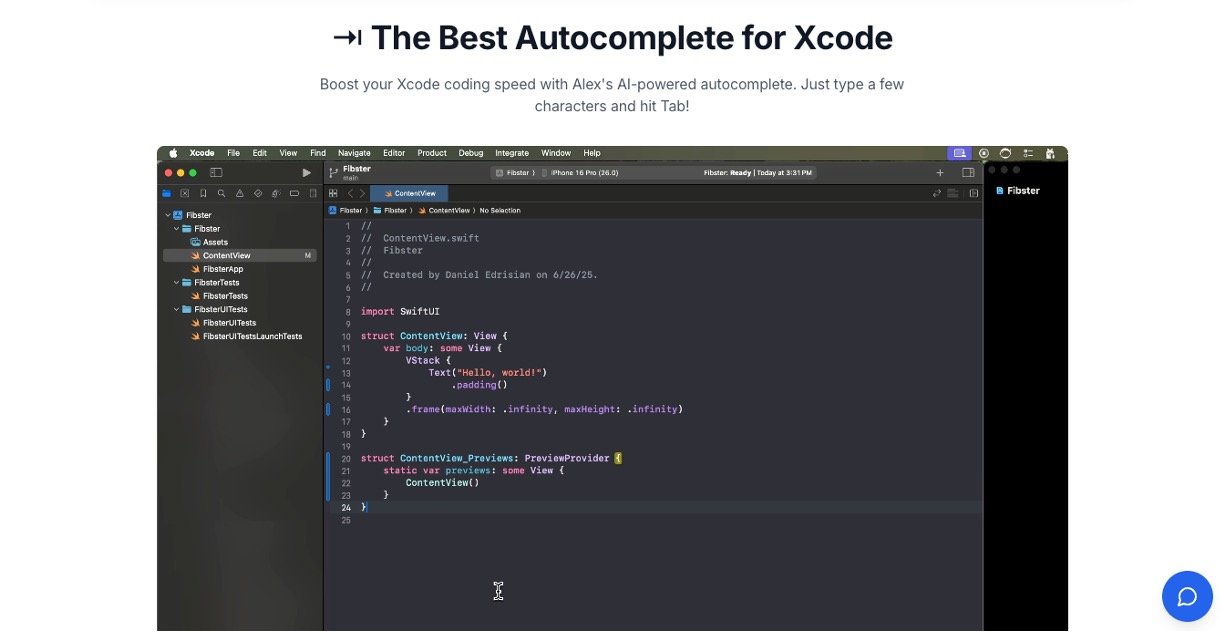 Alex is the most powerful AI agent built right inside Xcode, making iOS app development faster and easier for everyone. It automatically fixes bugs, adds packages, runs your app in the simulator, and handles tons of tasks so you can focus on building cool apps. Over 25,000 developers love it for shipping projects quicker without the usual headaches.