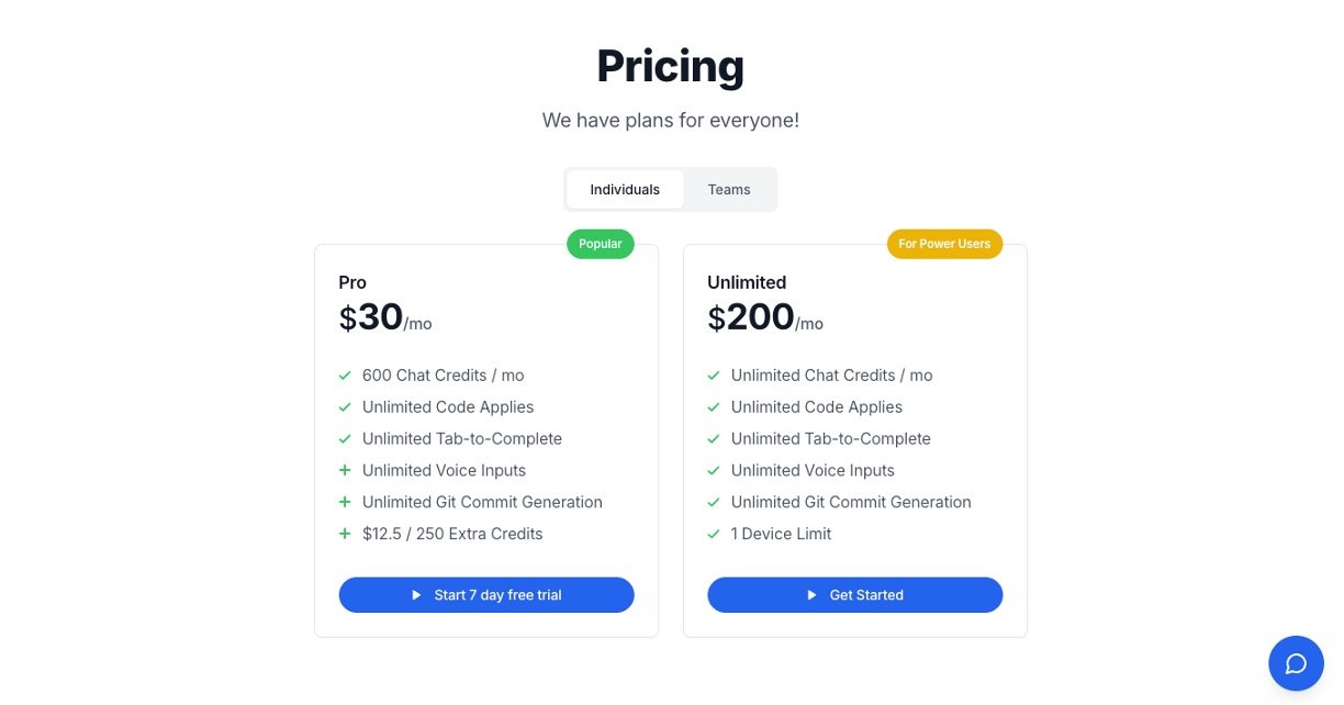 Smart Autocomplete: Type a few characters, hit Tab, and get lightning-fast AI code suggestions to speed up writing.