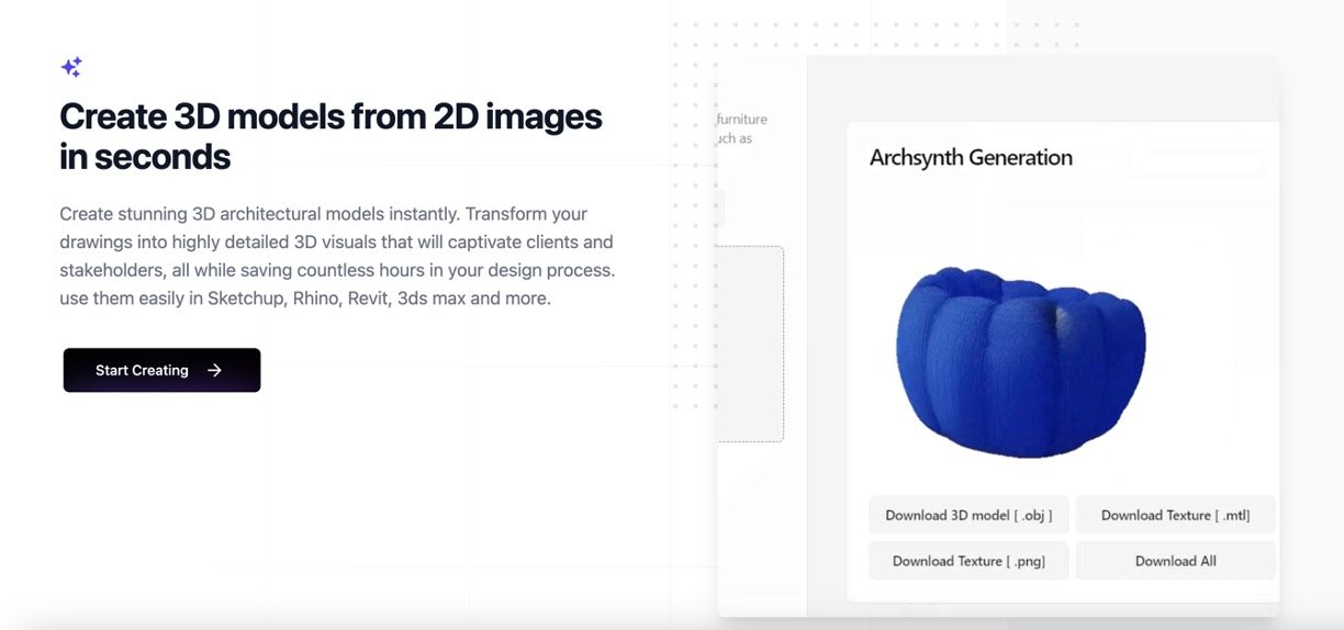 2D to 3D Conversion: Transforms 2D images into detailed 3D architectural models usable in various design software like SketchUp and Revit.