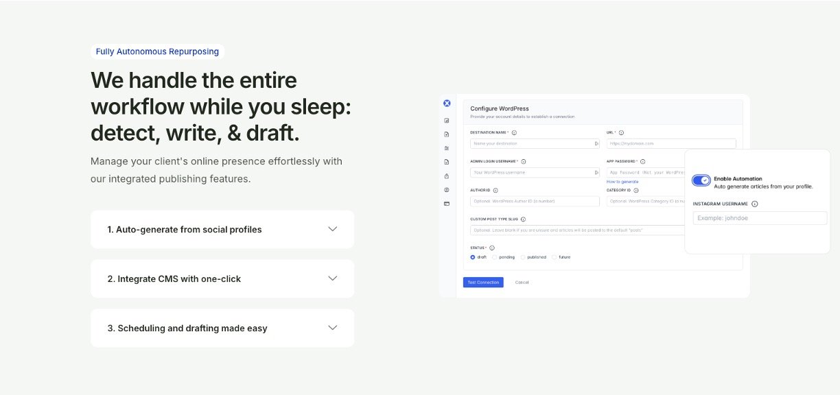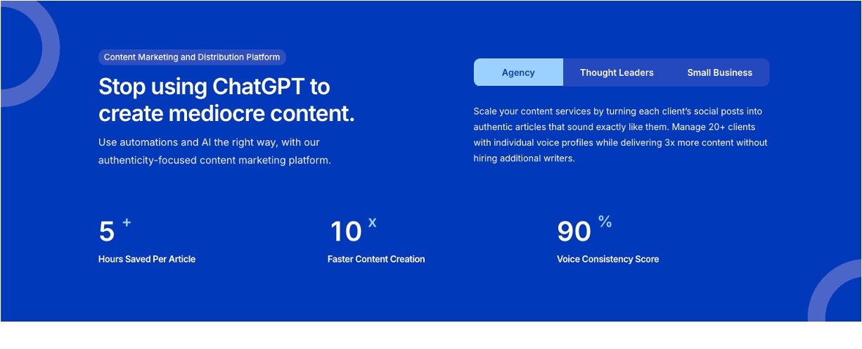 Agencies scaling content for 20+ clients by repurposing social insights into thought leadership pieces.