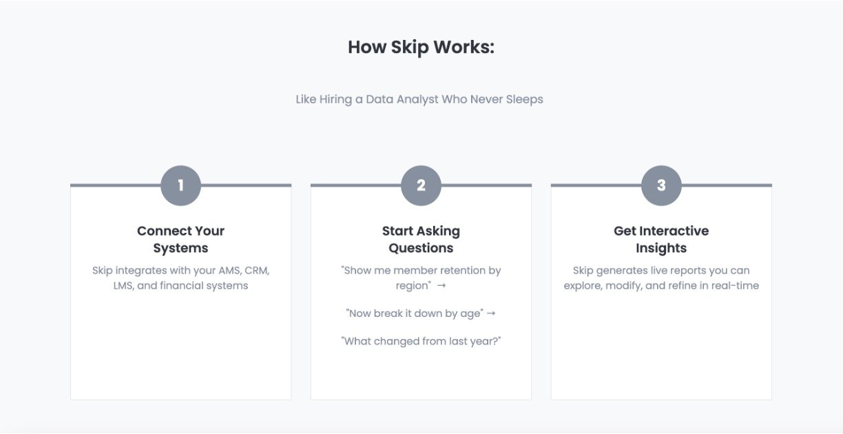Skip turns your business questions into clear insights in minutes, without needing any coding skills. It lets anyone ask plain English questions about their data, like chatting with a top analyst, and creates interactive charts you can tweak on the spot. Best of all, it keeps your data safe by running everything inside your own secure systems—no uploads to outside servers.