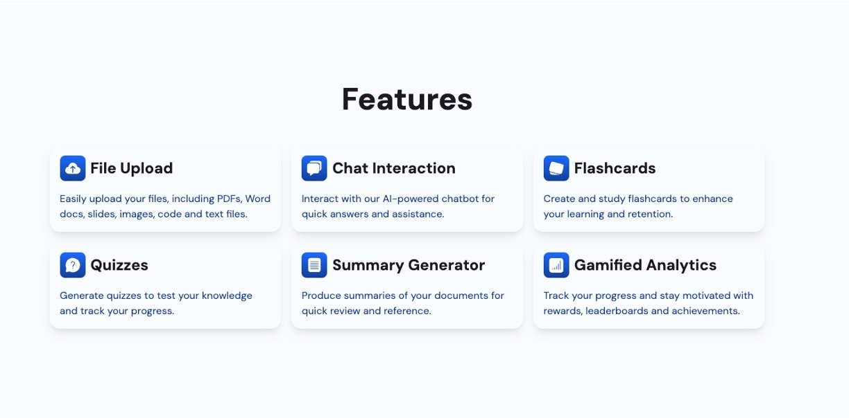 Instantly create quizzes, flashcards, and summaries from any study material.