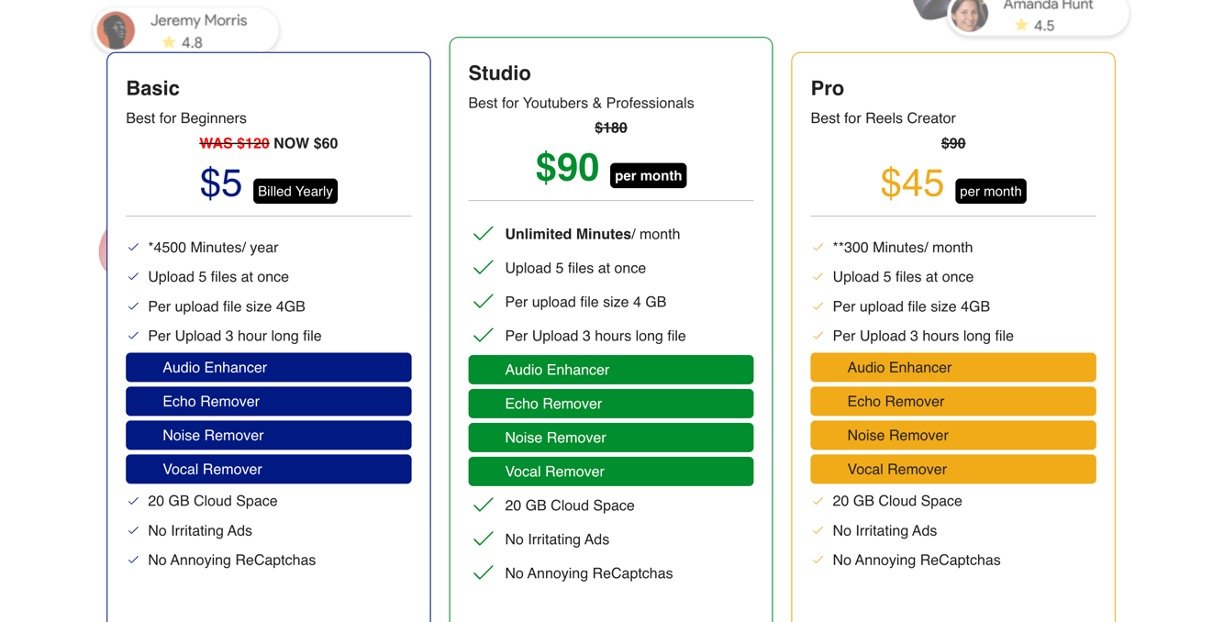 • Free trial available, with premium options for more minutes, bigger files, and no watermarks.​