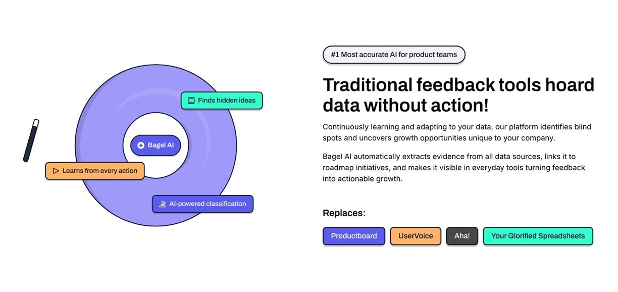 Bagel AI is an enterprise-grade, AI-native product intelligence platform that transforms raw customer feedback and business data into actionable insights for product teams. By connecting the dots between product gaps, customer needs, and revenue impact, Bagel AI empowers product managers, GTM, and leadership teams to prioritize high-impact features and align roadmaps with real business outcomes. The platform’s sophisticated AI learns from all feedback sources, generates new feature ideas, tracks adoption metrics, and delivers updates directly to the tools teams already use—streamlining collaboration and accelerating growth for B2B products.