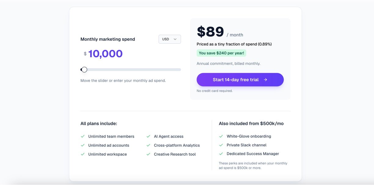 Connects Meta, TikTok, Google Ads, and GA4 in minutes for one unified dashboard with auto-sync.
