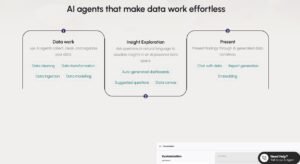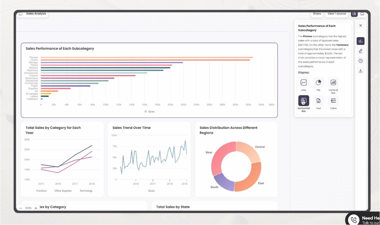 Natural Language Querying: Allows users to ask business questions in everyday language, generating instant visualizations and insights.