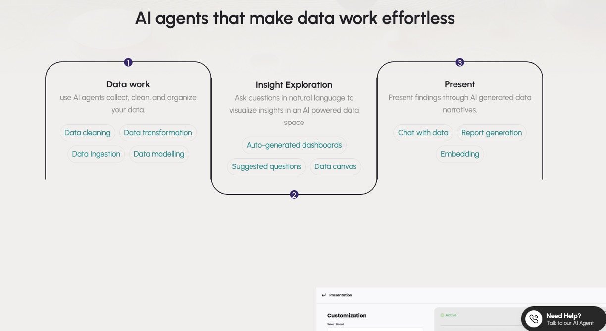 AI-Driven Data Processing: Automates data collection, cleaning, transformation, and modeling, streamlining the analytics workflow.