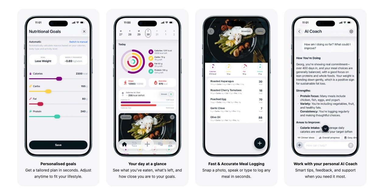 • Beginner Dieters: Newbies use AI tips and reminders to build healthy habits and understand their eating patterns.