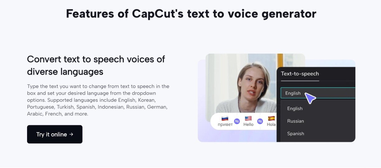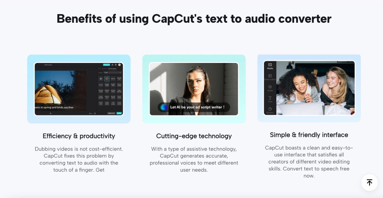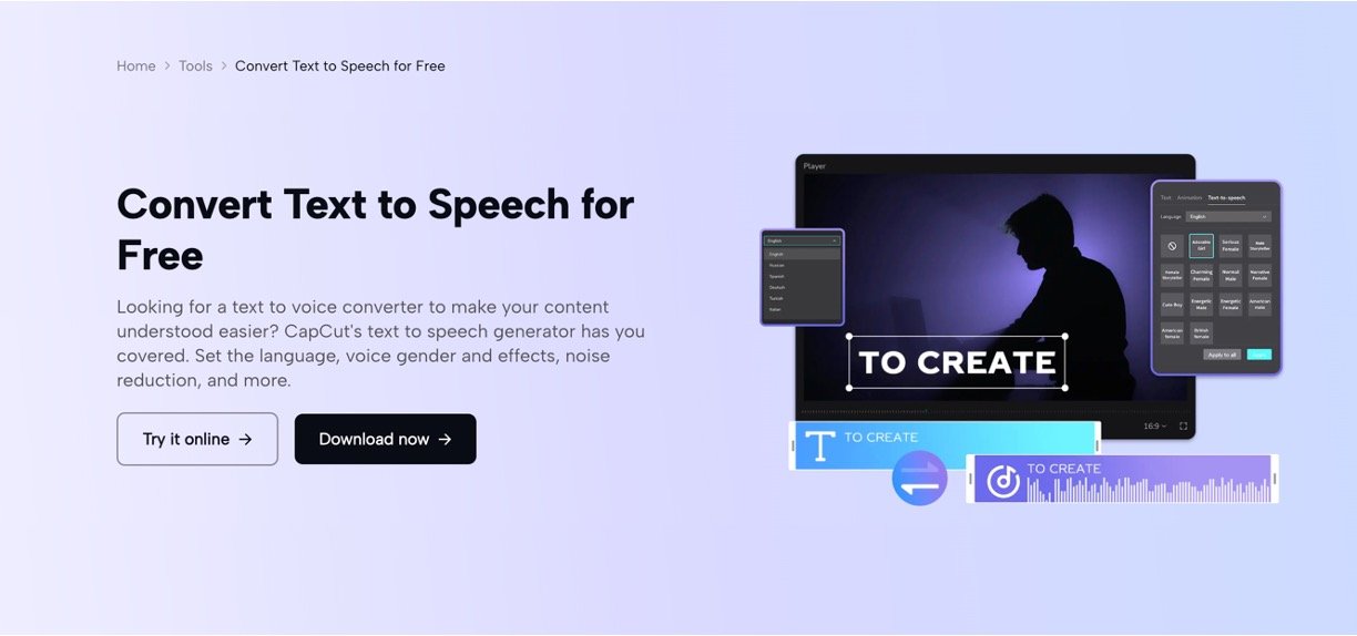 CapCut Text to Speech (TTS) is a free, easy-to-use AI-powered tool that converts written text into lifelike voiceovers for videos and multimedia projects. It offers a diverse library of realistic male and female voices in multiple languages and accents, allowing creators to enhance their video content without recording audio manually. The tool includes customizable options such as speech rate, volume, pitch, and fade effects, making it suitable for various content styles. CapCut's TTS is integrated into its video editing platform, enabling seamless addition of voice narration directly in the editing workflow.