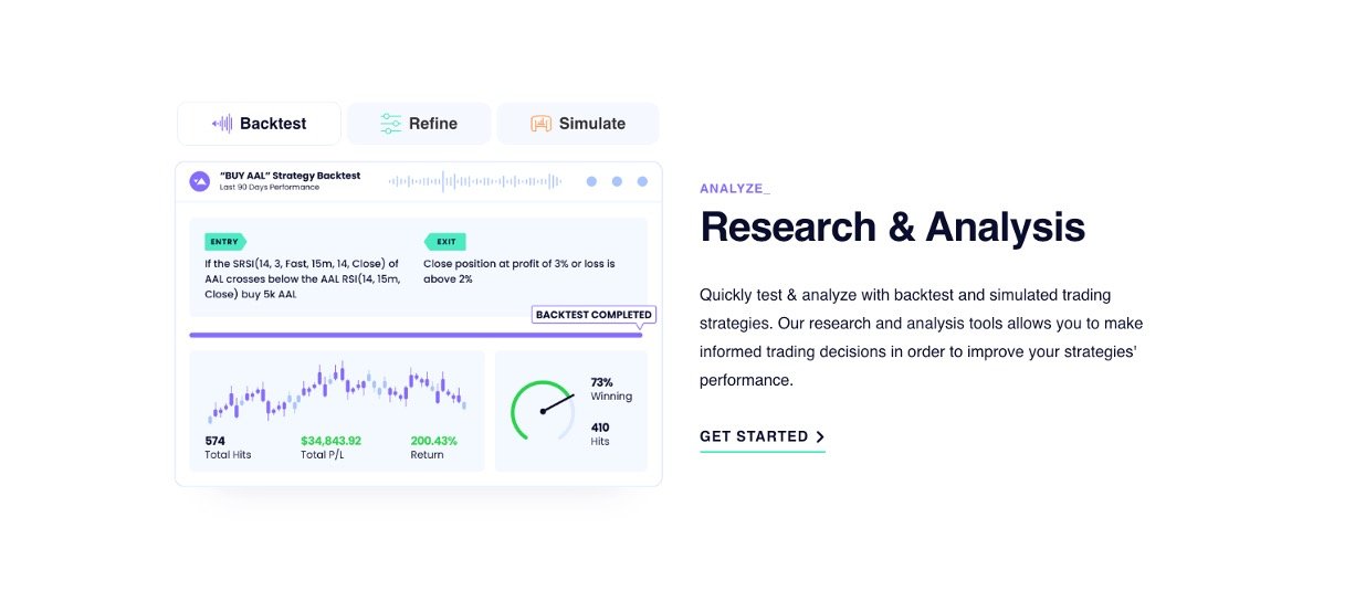 Code-Free Automation: Write trading plans in plain English to automatically buy or sell based on market conditions, technical indicators, or news events.