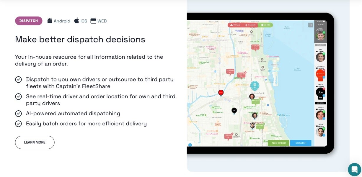 AI-powered automated dispatch system that optimizes delivery decisions and routes, including batch orders for higher efficiency.