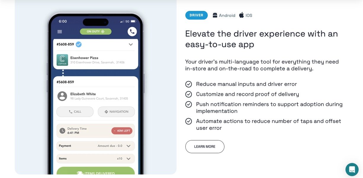 Captain AI is a comprehensive delivery management platform designed specifically for restaurants with their own delivery drivers. It streamlines and automates delivery operations from kitchen to customer using AI-powered dispatch, real-time driver tracking, and data-driven insights. The system supports both in-house and third-party drivers, offering a branded tracking experience for customers and reducing delivery times while improving efficiency and driver experience.
