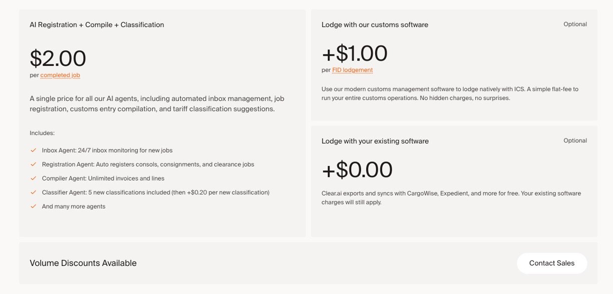 Clear AI is an AI-powered platform primarily designed for the customs, logistics, and forwarding industry to streamline workflows and improve efficiency in customs brokerage processes. It automates tasks such as job registration, customs entry compilation, tariff classification suggestions, and inbox management, helping users process double the volume of jobs without needing extra staff while reducing errors and compliance risks. The platform offers seamless integration with popular industry software like CargoWise, Expedient, Xero, and TradeWindow.