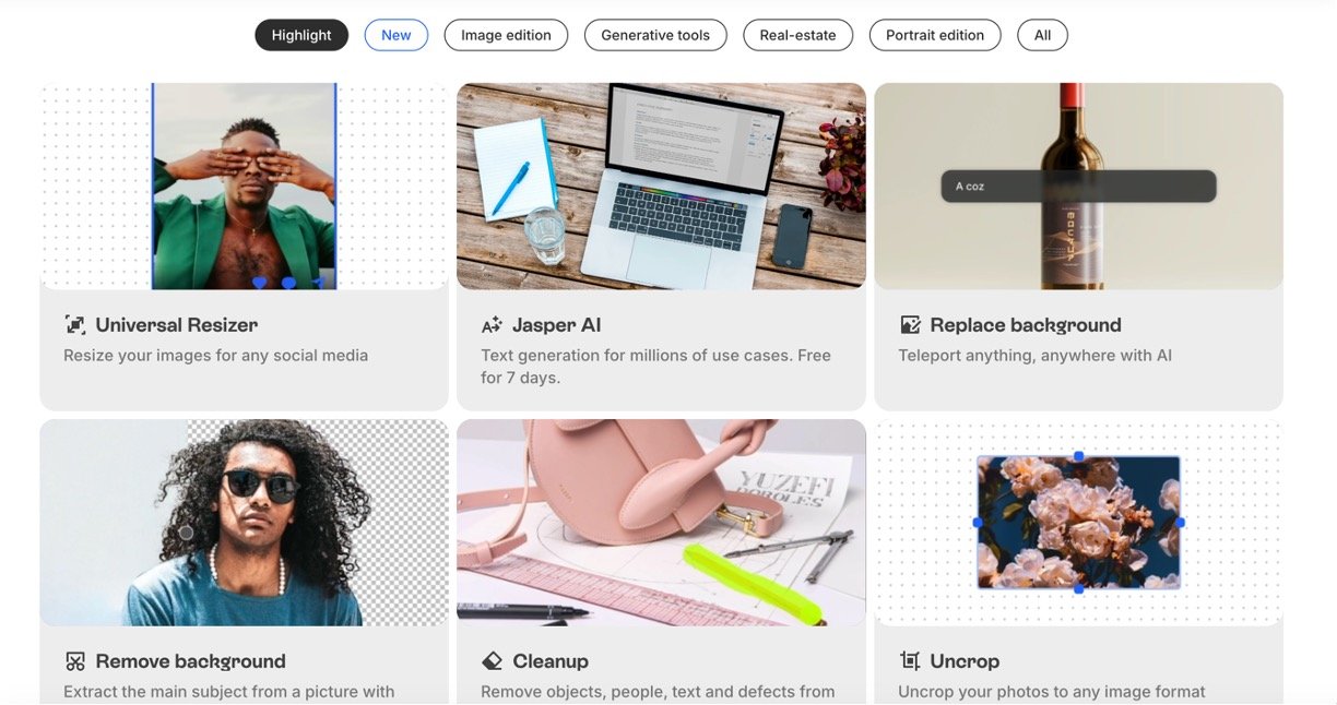 • Cleanup: Automatically wipes out objects, people, text, or defects from your pictures.
