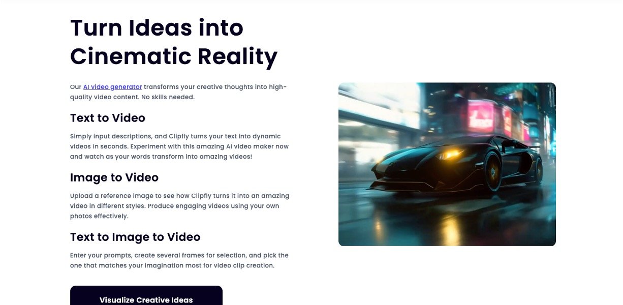 Clipfly AI is a comprehensive AI-powered video creation and editing platform designed for users ranging from beginners to professionals. It simplifies the process of producing high-quality videos by transforming text prompts and static images into dynamic video content. Alongside video generation, Clipfly offers extensive editing tools such as subtitle addition, video trimming, filters, and advanced enhancements like watermark removal and face swap. The platform also supports AI-powered features including talking avatars, anime-style video generation, and AI-driven video enhancement, making it a versatile solution for marketers, content creators, educators, and social media influencers.