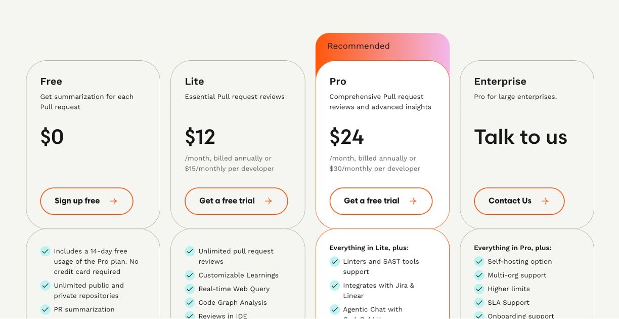 Supports configurable review rules, learning from team feedback to adapt to coding standards.