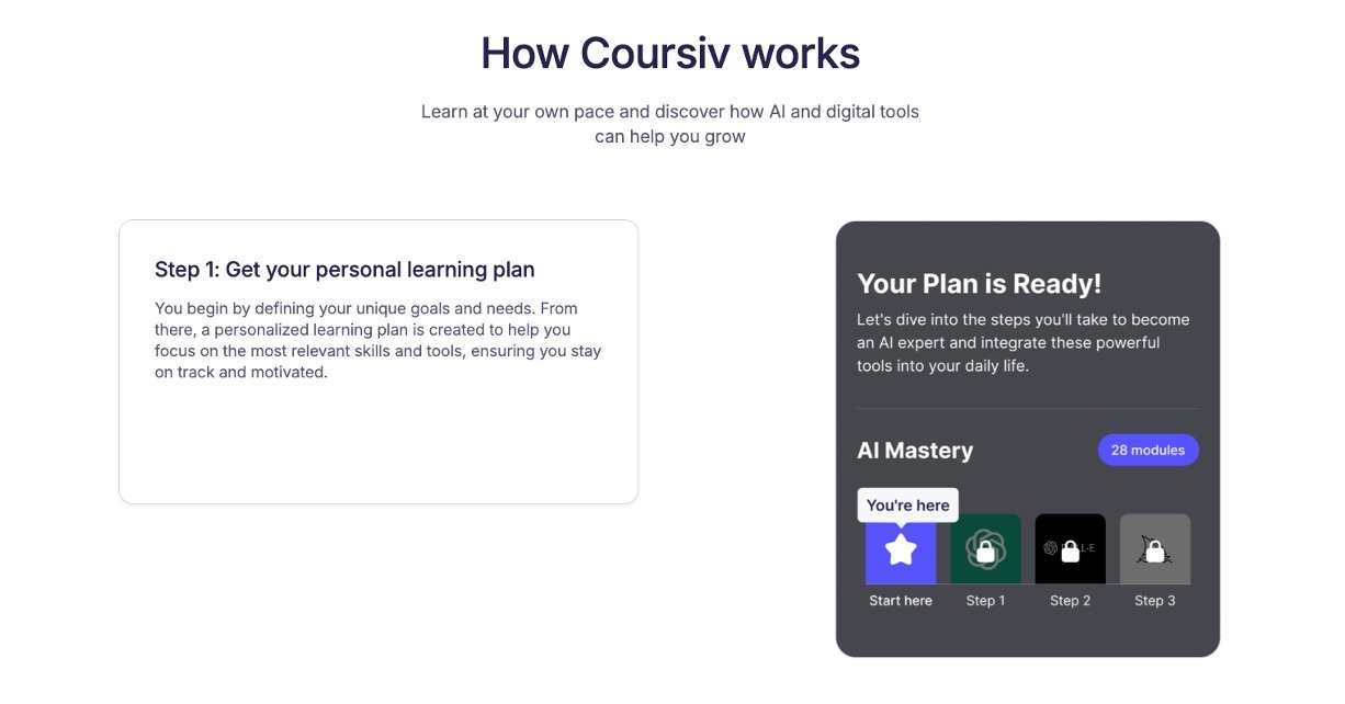Coursiv makes learning AI simple and fun for anyone, no tech background needed. It offers bite-sized lessons, like a 28-day challenge, where you pick your goals and get a personalized plan to master tools such as ChatGPT and Midjourney. Over 813,000 users have joined to boost their skills, save time, and grow income through practical, hands-on guides available right in the app.