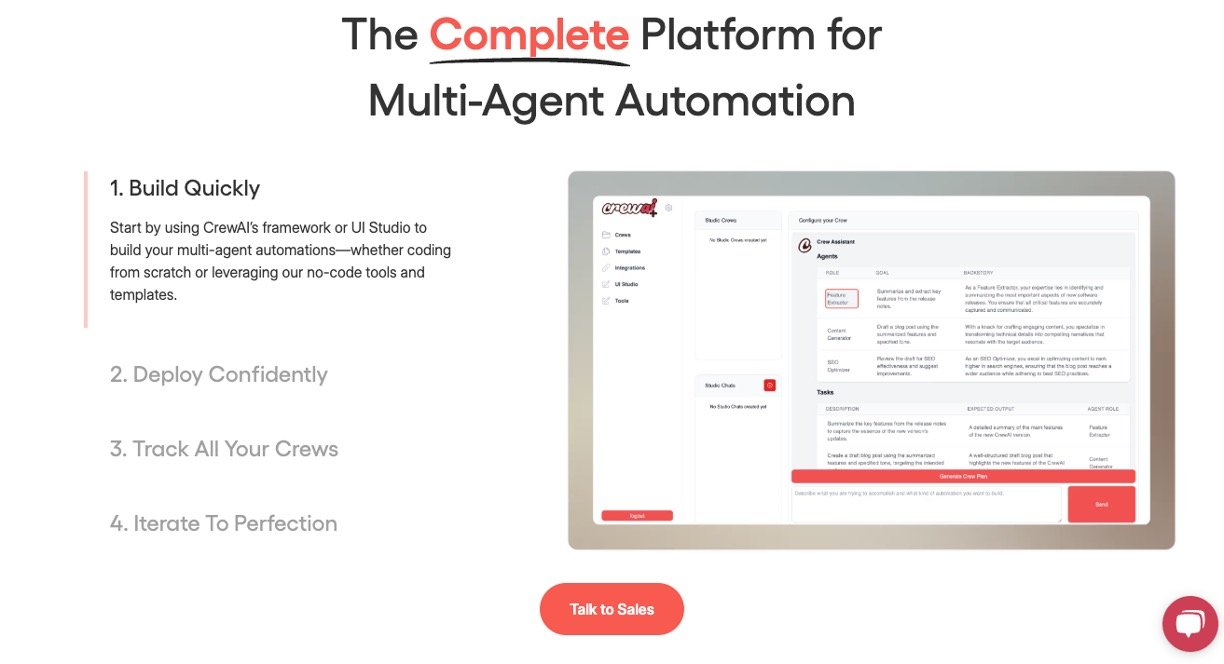 Flexible Development Options: Utilize CrewAI’s framework or UI Studio to build multi-agent automations, accommodating both code-based and no-code approaches.