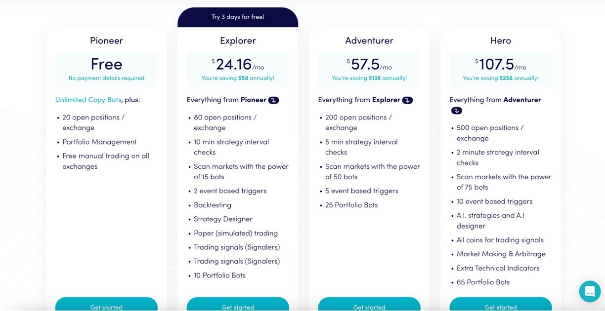 Social trading marketplace with options to copy experts or buy pre-configured bot templates and trading strategies.