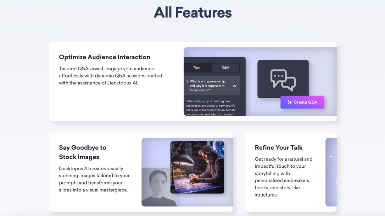 Decktopus AI is an intelligent presentation creation platform designed to help business professionals, educators, marketers, and students quickly generate polished, visually appealing presentations. By simply typing a presentation title or topic, Decktopus uses AI to automatically design slides, suggest layouts, generate content outlines, and add relevant visuals. It eliminates the complexity of manual slide design, enabling users without design skills to create professional presentations in minutes. Its user-friendly interface and automation save time and ensure consistent, attractive results for any presentation need.