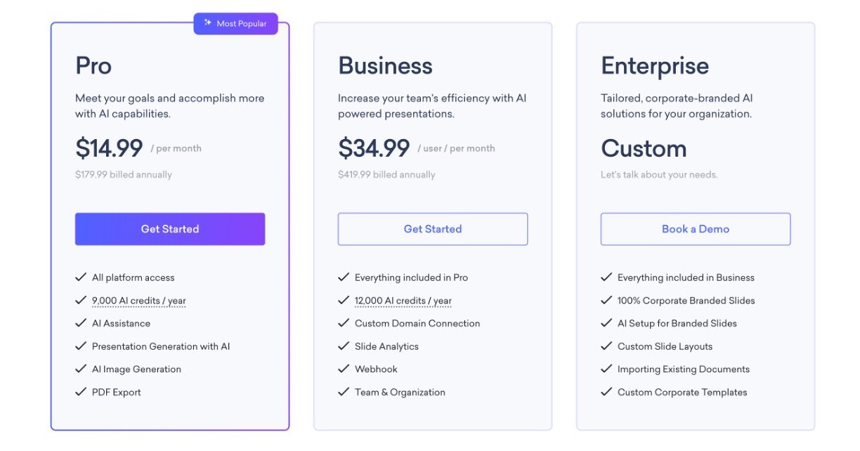 AI-powered automatic slide creation including outlines, slide notes, and content.