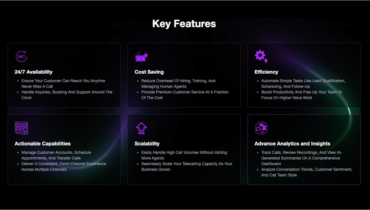 Dialoft AI is a powerful voice AI platform designed to automate phone calls for businesses, providing human-like conversations 24/7. It helps companies save costs while improving efficiency by handling tasks such as lead qualification, appointment scheduling, customer support, follow-ups, and cold calling. Its AI agents interact naturally with callers, manage high call volumes, and free up human staff to focus on more complex work. Dialoft AI also offers detailed call analytics, recording, and sentiment analysis to help businesses optimize their communication strategies and customer experience.