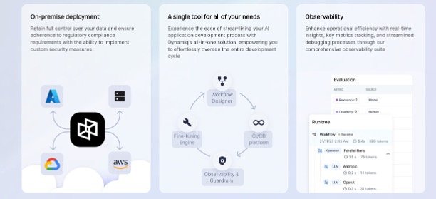 Dynamiq is an enterprise-focused platform designed to streamline the development, deployment, and management of generative AI applications. With its low-code visual builder, organizations can rapidly prototype and deploy AI agents tailored to their specific needs. Dynamiq emphasizes data security and compliance, offering on-premise deployment options and robust observability tools. Its modular architecture supports seamless integration with existing systems, making it a versatile solution for businesses aiming to harness the power of AI while maintaining control over their data.