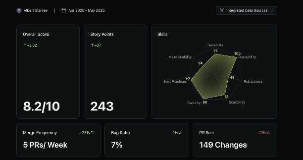 Real-Time Performance Insights: Tracks team output, sprint progress, and code quality, highlighting bottlenecks and coaching opportunities.