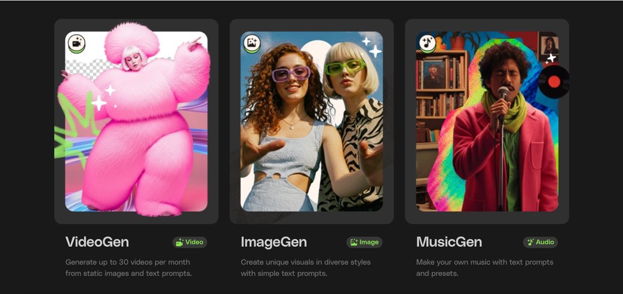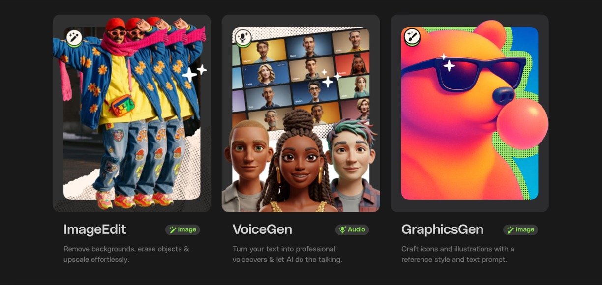 Quickly generate high-quality stock images, videos, and audio content for marketing campaigns and social media.