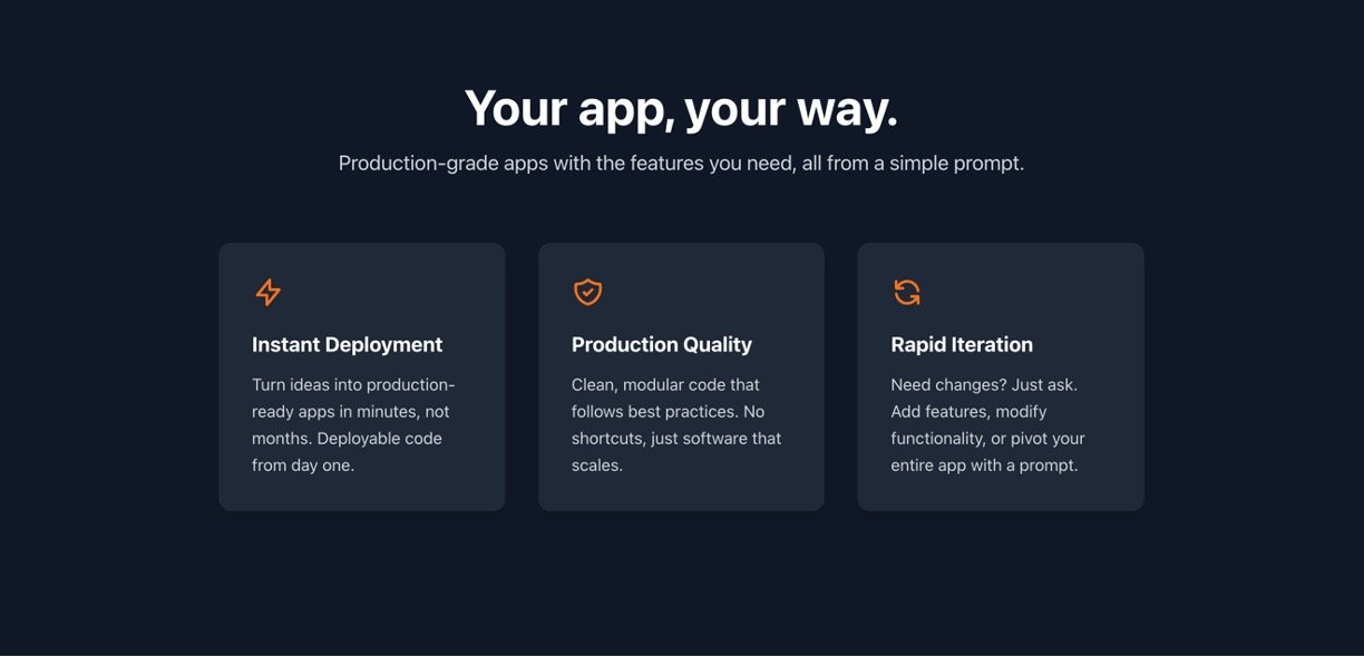 • Build real, production-quality SaaS, marketplace, or internal tools from a prompt.