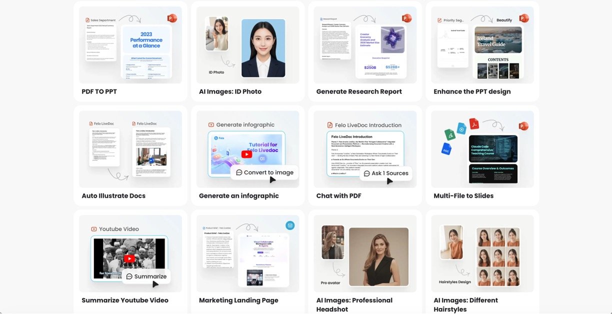 Felo AI is your free, all-in-one AI search engine and productivity platform that turns simple searches into powerful results. Imagine searching the web without language barriers or endless clicking—Felo AI does just that. This free tool combines a super-smart search engine with built-in creators for slides, images, reports, and more. Drop in a question, and it delivers clear answers with sources, plus extras like charts or mind maps to make sense of it all. Whether you're a student, business owner, or just curious, Felo makes complex info simple and actionable in minutes.