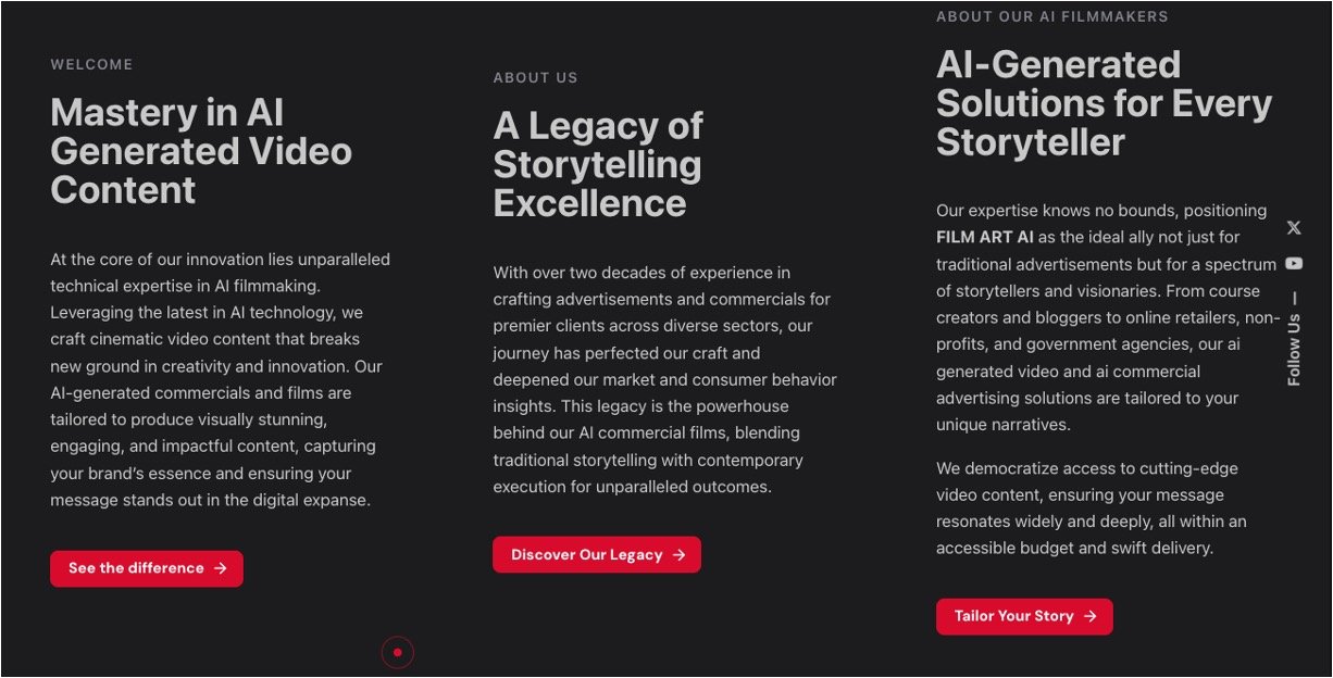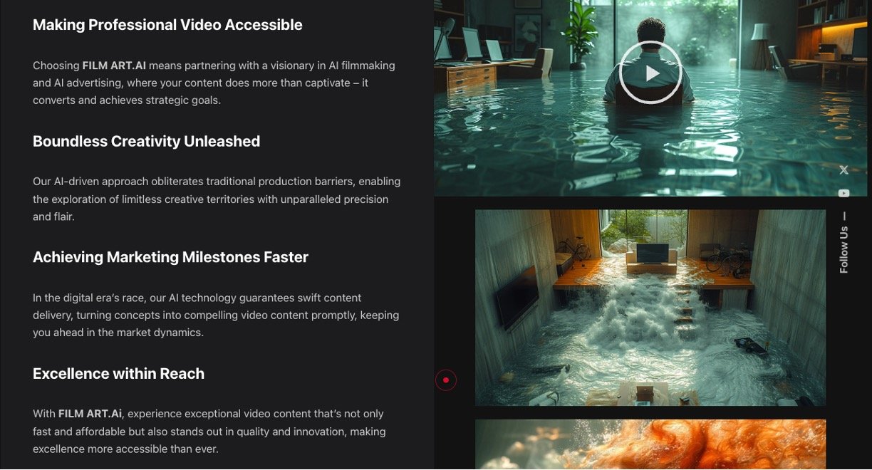 FILM ART AI is a cutting-edge platform that revolutionizes video content creation by integrating advanced AI filmmaking technologies with expert storytelling. It offers creators the ability to produce breathtaking visuals, reduce production costs, and accelerate marketing goals with creative, efficient, and impactful AI-driven video solutions. FILM ART AI serves as a gateway to seamless storytelling where creative visions become dynamic, memorable screen content.