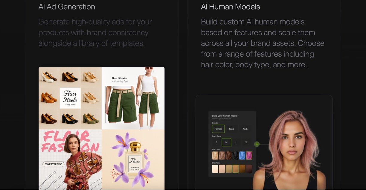 AI ad and video generation: Create ready-to-use ads or short product videos from one image with brand-consistent templates.
