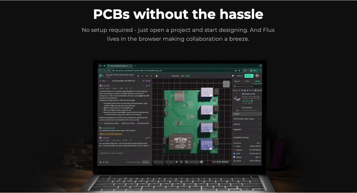 Flux AI combines human-like results with intelligent AI-driven layouts and routing, learning from each design iteration to optimize and balance schematic arrangements. Users can manually define high-priority routing while AI completes the rest, accelerating the PCB design process without sacrificing quality. With Copilot integration, users can brainstorm, debug, and wire schematics automatically, even asking contextual questions to AI about component capabilities, significantly reducing manual research and datasheet consultation.