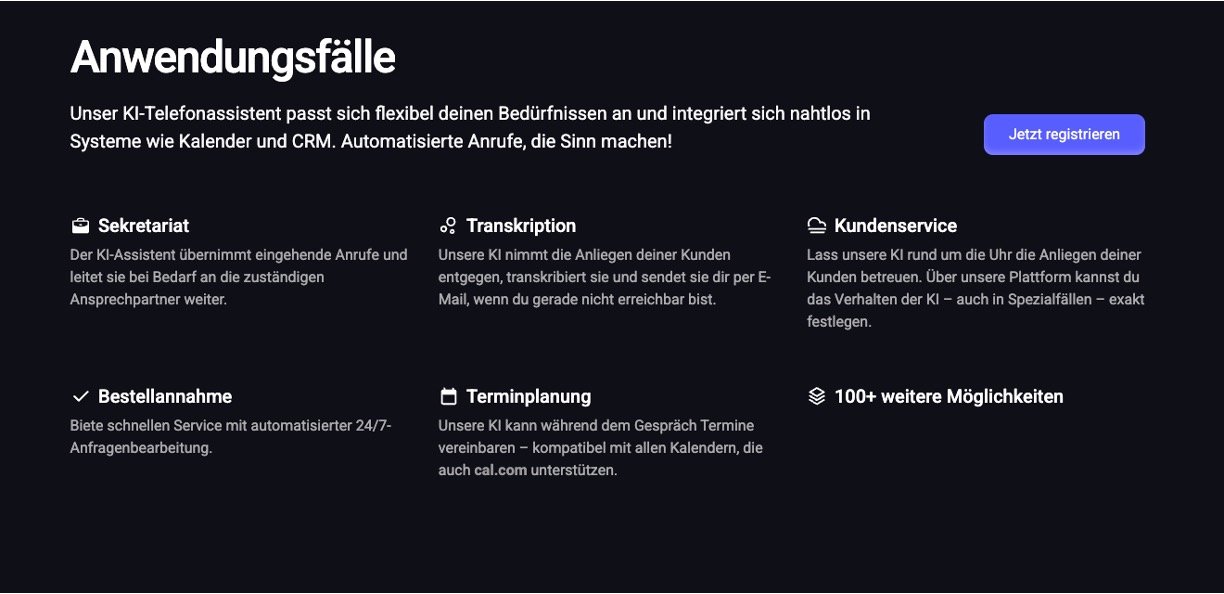 Fonio AI is a smart AI telephone assistant built for German-speaking businesses, handling incoming and outgoing calls just like a real person. It answers calls 24/7, books appointments, takes orders, and connects with your calendars or CRM systems to make customer service smooth and easy. No more missed calls or overloaded staff – this tool keeps your business reachable anytime, with full GDPR protection on German servers.​