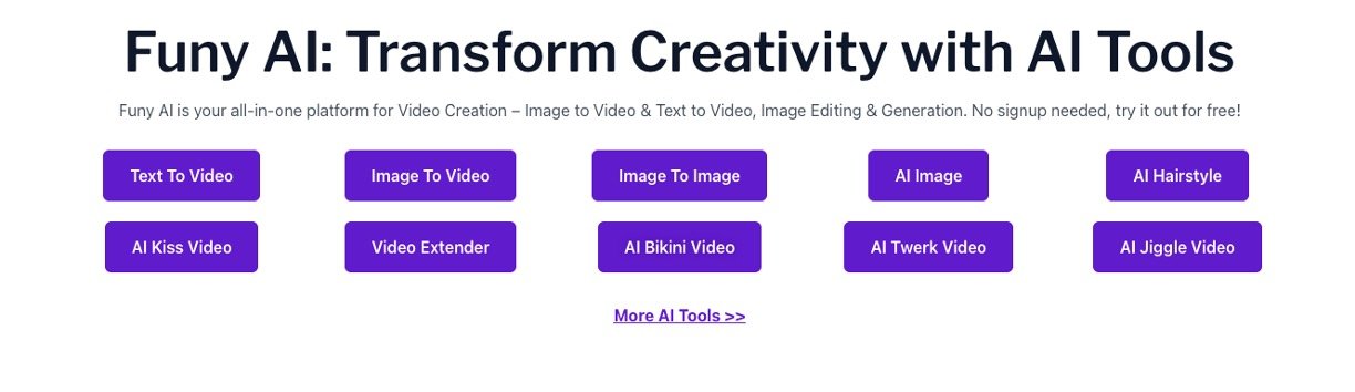 Funy AI is an easy-to-use online platform that lets anyone create videos from images or text, edit photos, and make fun AI effects without needing an account or tech skills. Perfect for beginners, it offers free credits to start right away and turns simple ideas into lively videos or stunning images in seconds. Upgrade to VIP with a one-time payment for more features, no subscriptions required.​