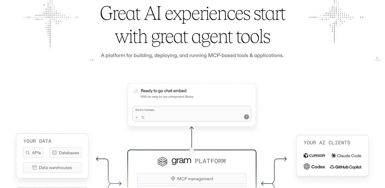 Gram AI is your easy gateway to turning everyday APIs into smart tools for AI agents and large language models (LLMs). Just upload your API details, mix and match tools, and host them instantly—no coding headaches needed. It handles everything from creation to sharing, with top-notch speed (12ms responses), rock-solid uptime (99.9% SLA), and secure features like authentication and rate limiting, making AI integrations simple for anyone.