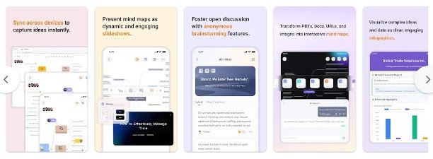 AI-powered summarization of videos, texts, articles, PDFs, audio, images (via OCR), and entire websites into structured mind maps.
