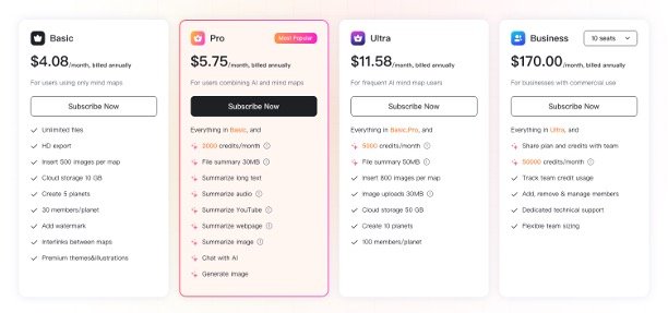 AI-Powered Mind Mapping: Automatically generates mind maps from text prompts, documents, or URLs, saving time on brainstorming and organizing ideas.