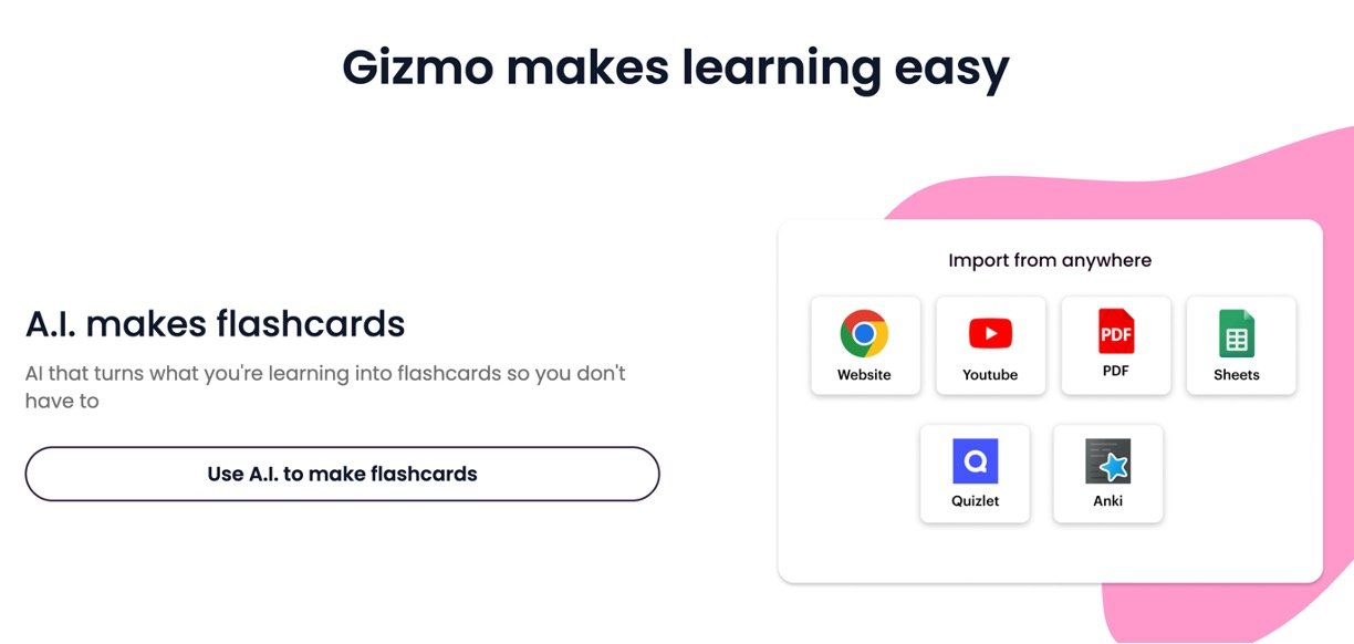 Gizmo AI is an easy-to-use app that transforms everyday studying for students and lifelong learners, using artificial intelligence to turn notes, PDFs, videos, and more into interactive flashcards and quizzes. Gizmo’s AI automates everything—making memorization fun and efficient, helping people boost their grades and confidence without tech headaches. The app leverages spaced repetition and social study features so anyone can recall information for exams or classwork and collaborate with friends along the way.